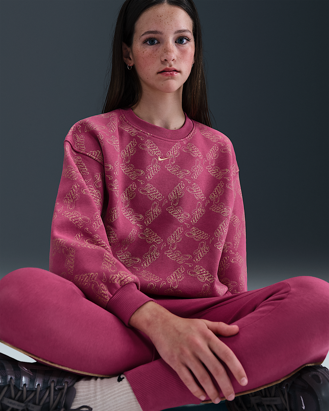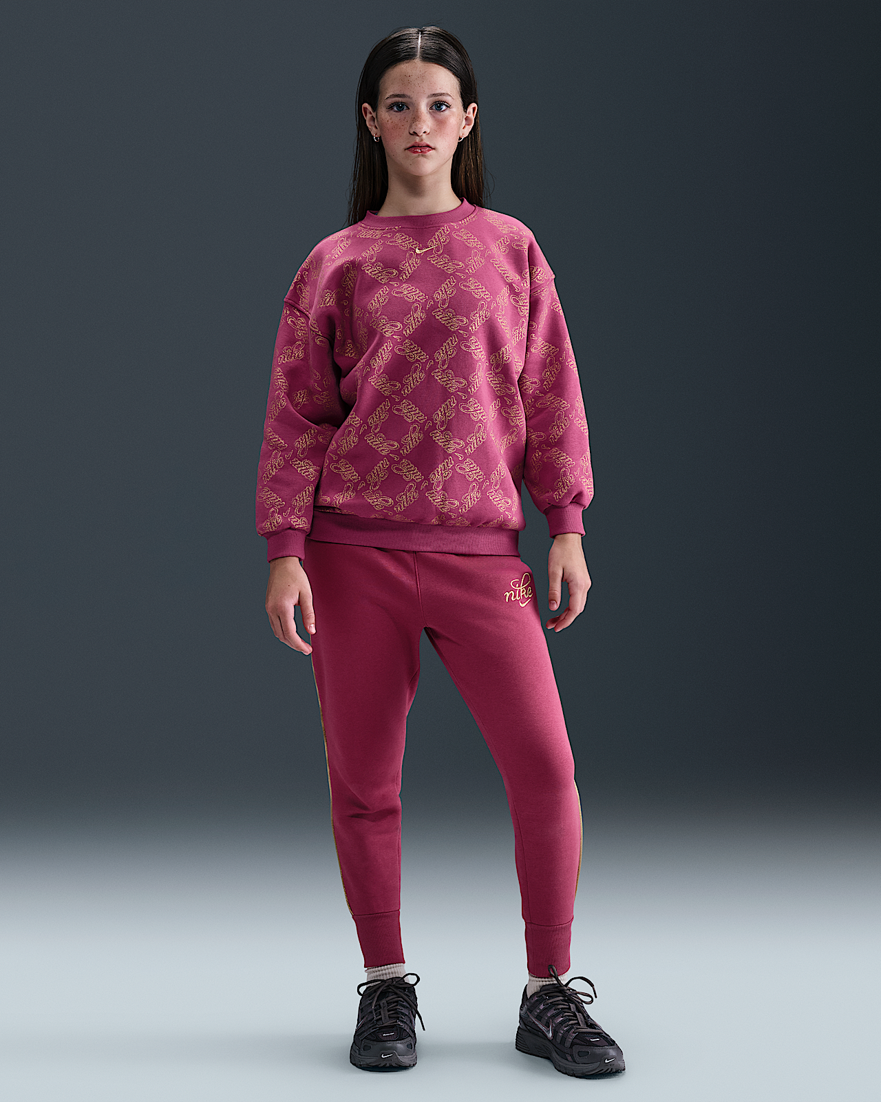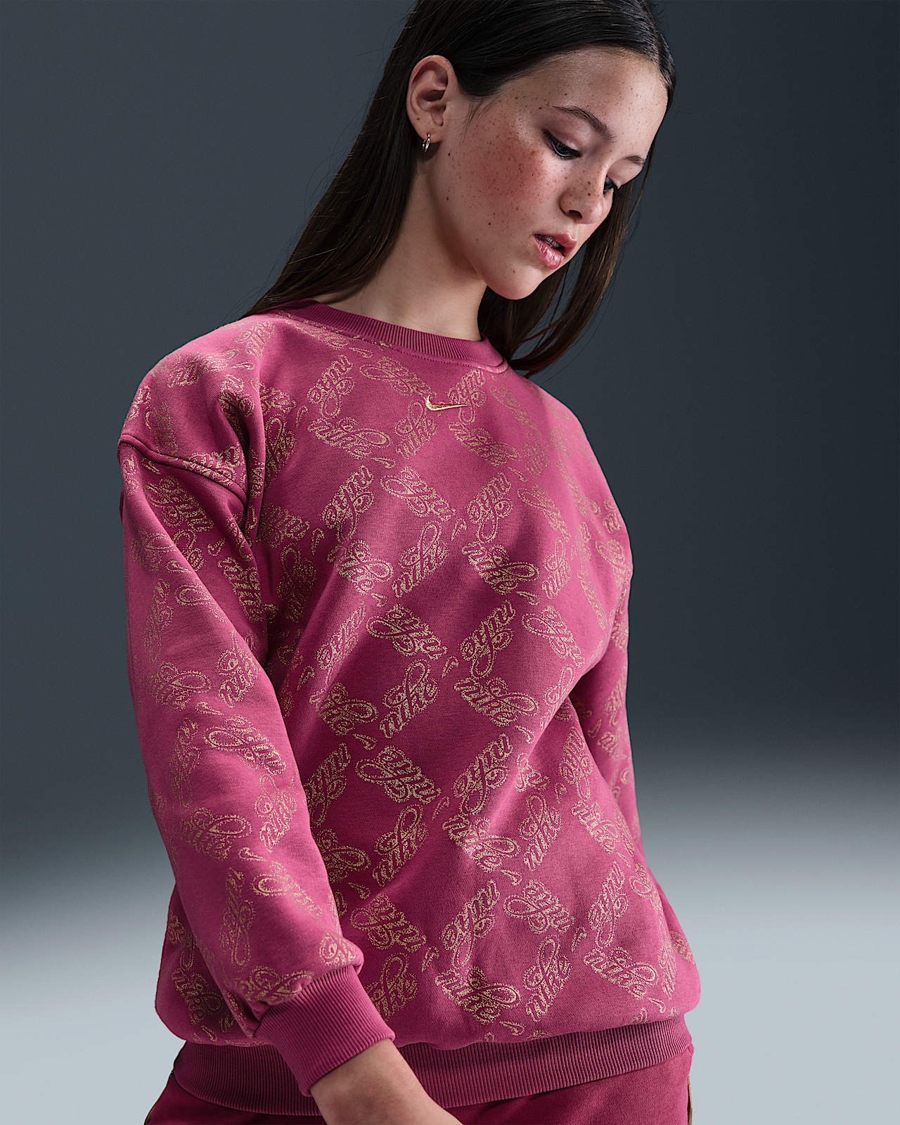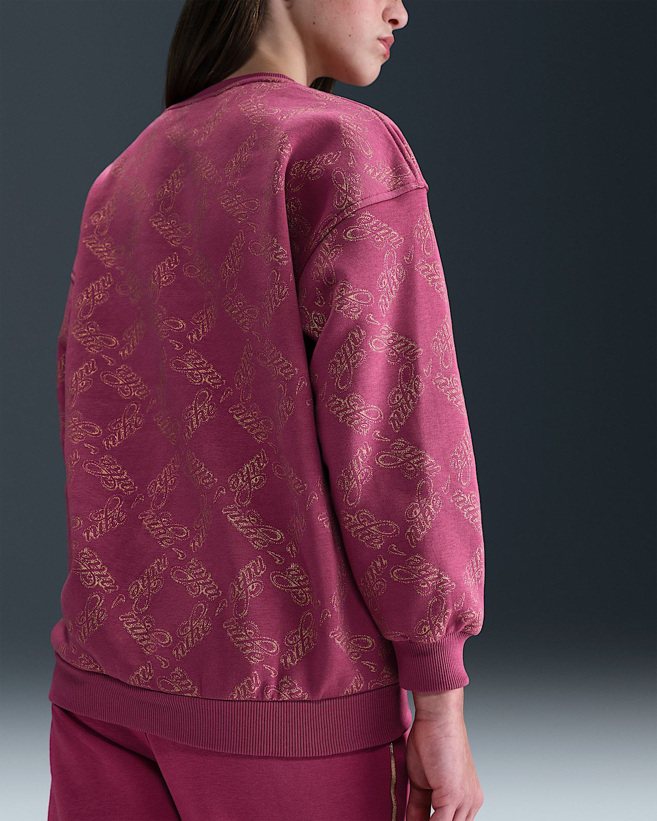 - Детский свитшот Nike Sportswear Club Fleece Big Kids' (Girls') Oversized Printed Crewneck