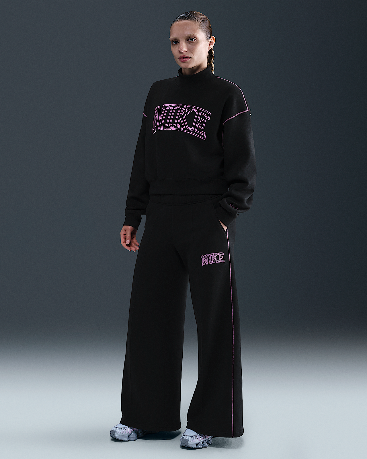 - Женские Nike Sportswear Phoenix Fleece Wide-Leg Sweatpants