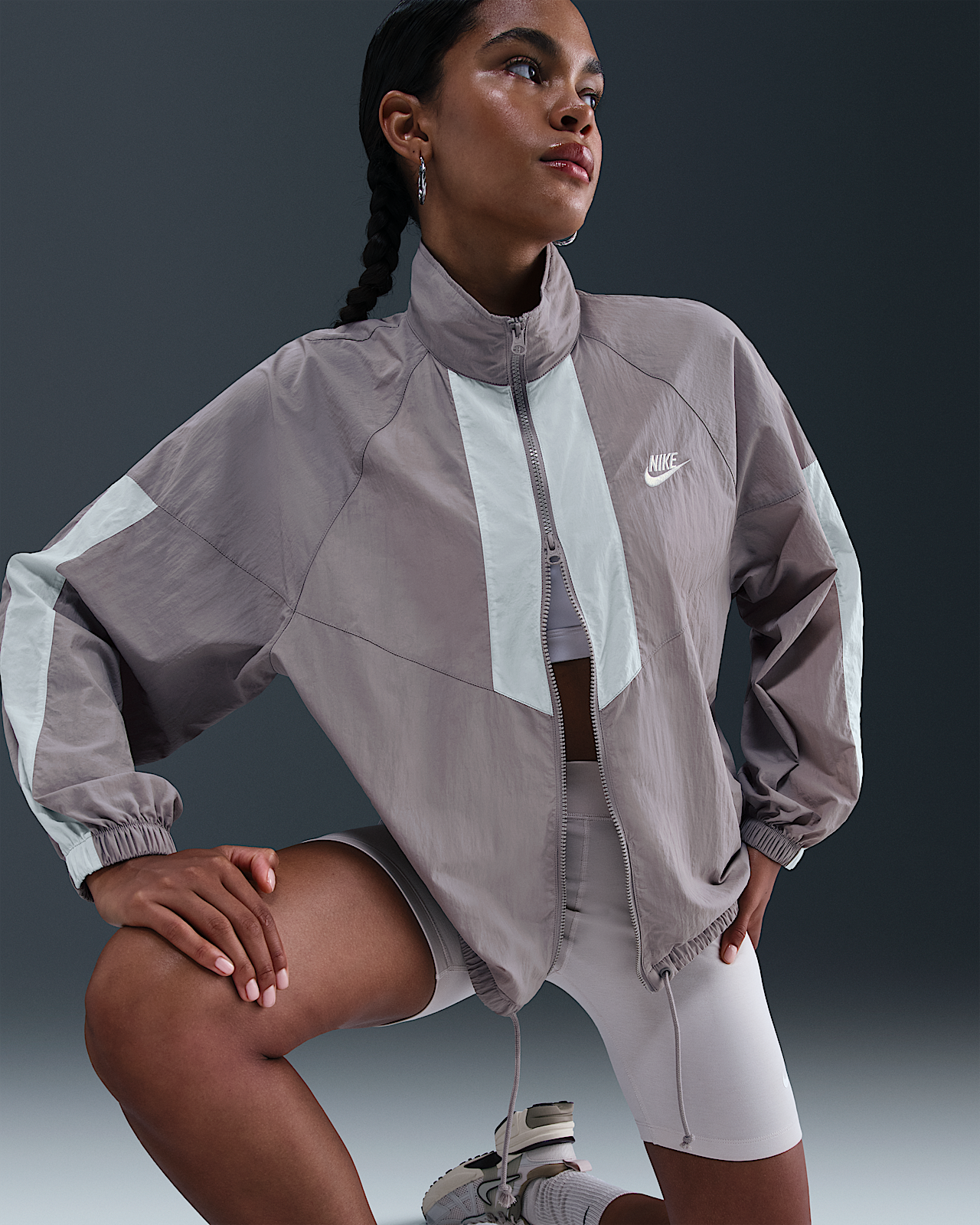 - Женская куртка Nike Sportswear Windrunner Oversized для бега