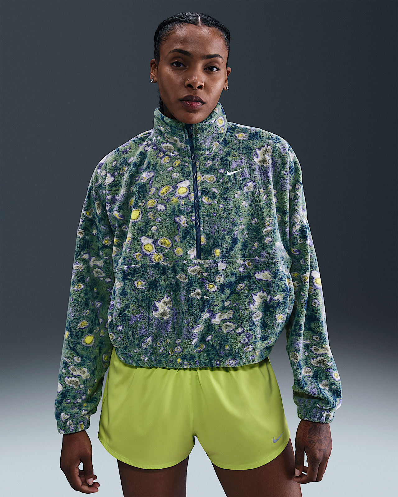 - Женские Nike One Therma-FIT Oversized 1/2-Zip Fleece Top