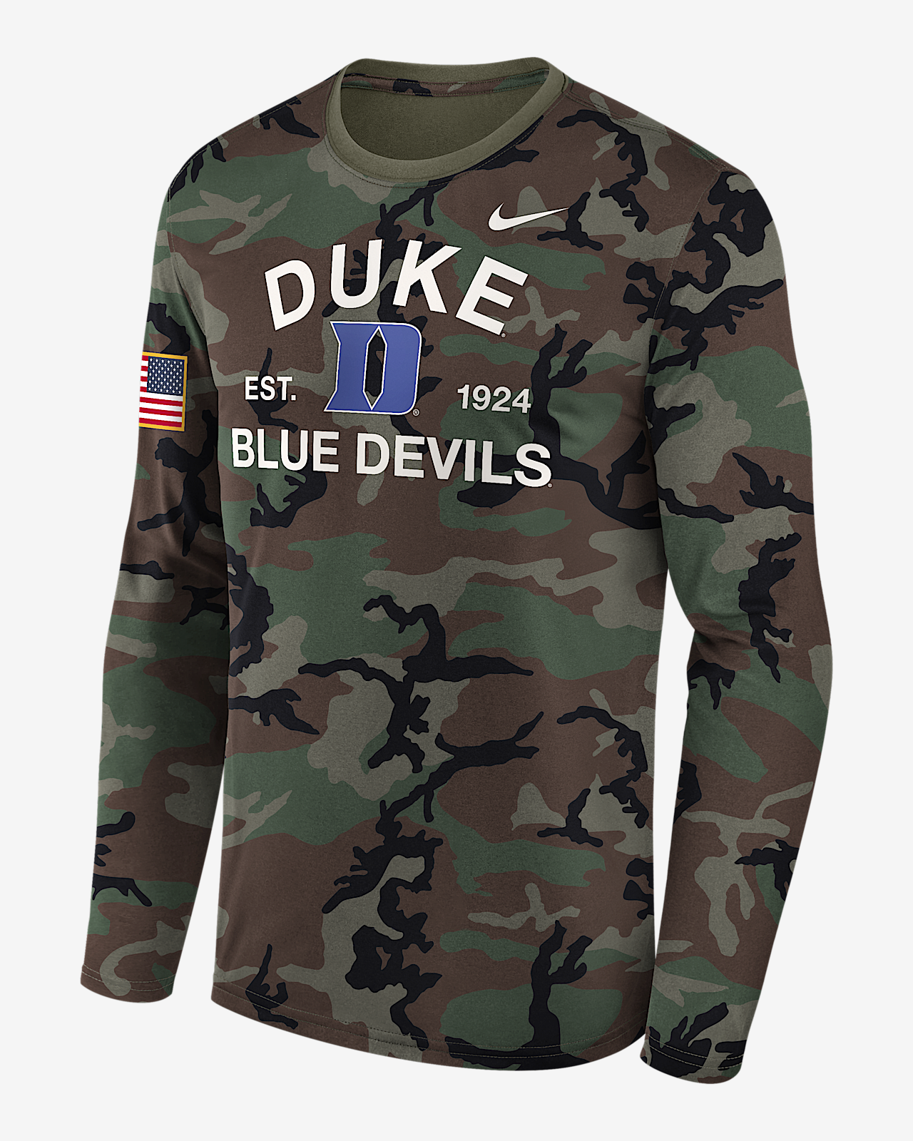 - Мужская футболка Duke 2025 Military Appreciation Legend Nike Dri-FIT College Long-Sleeve