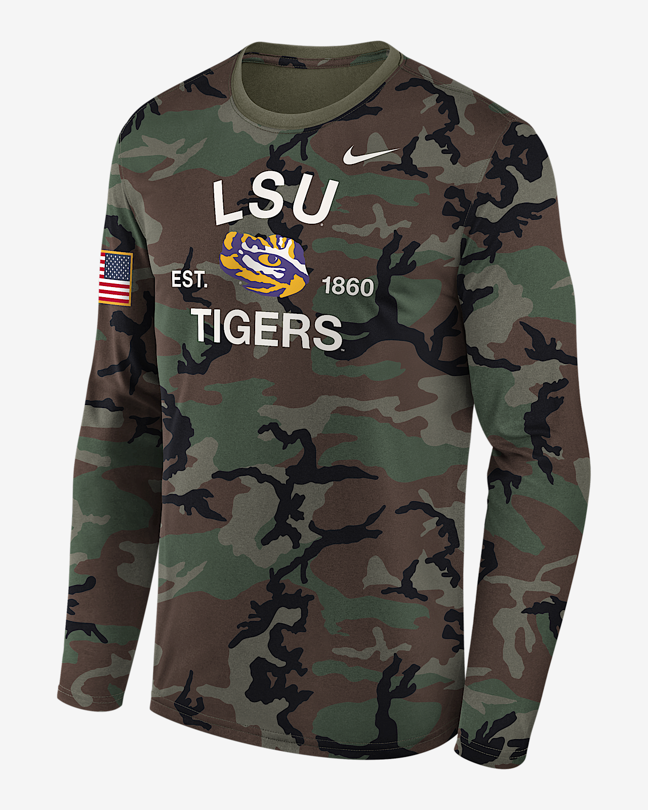 - Мужская футболка LSU 2025 Military Appreciation Legend Nike Dri-FIT College Long-Sleeve
