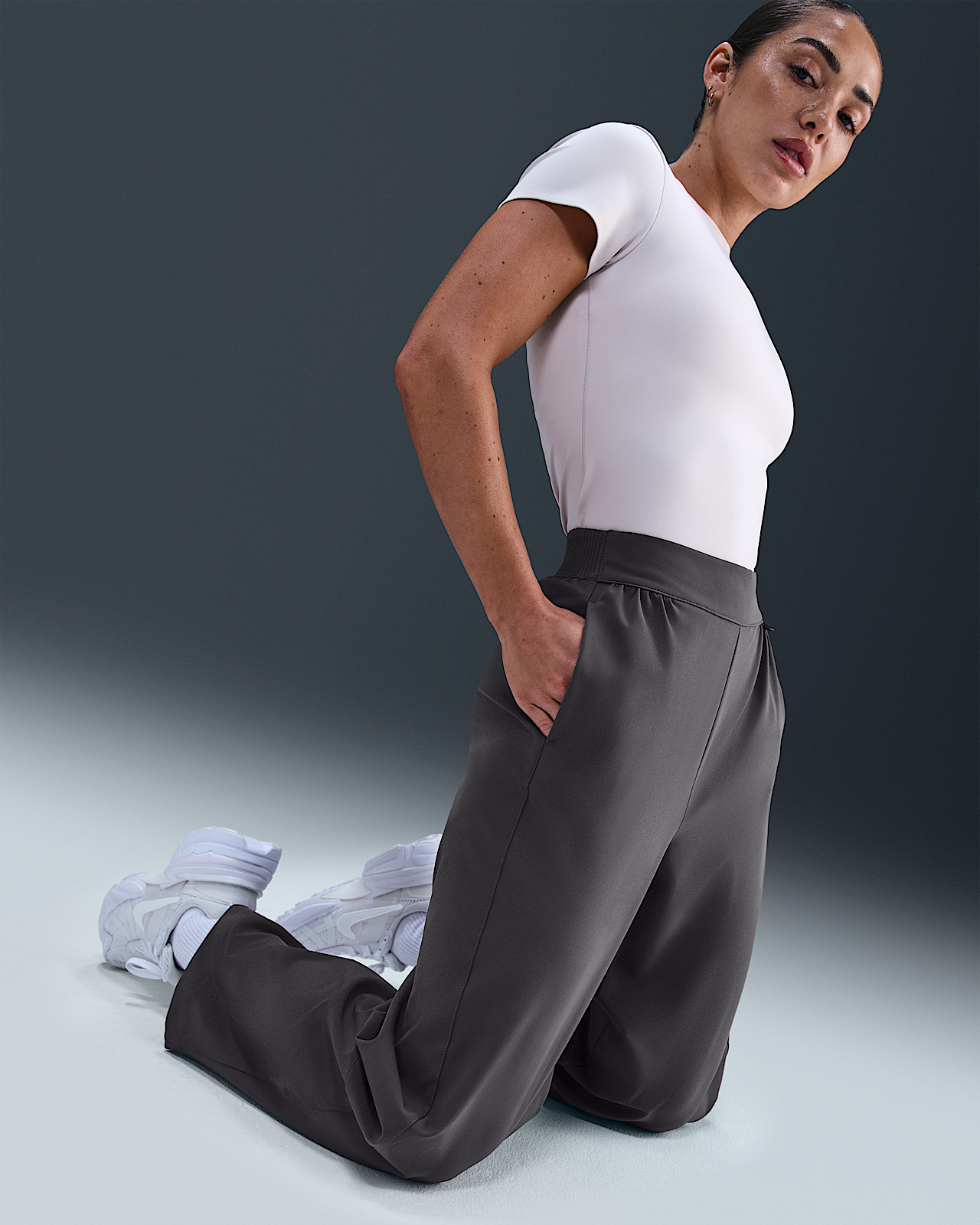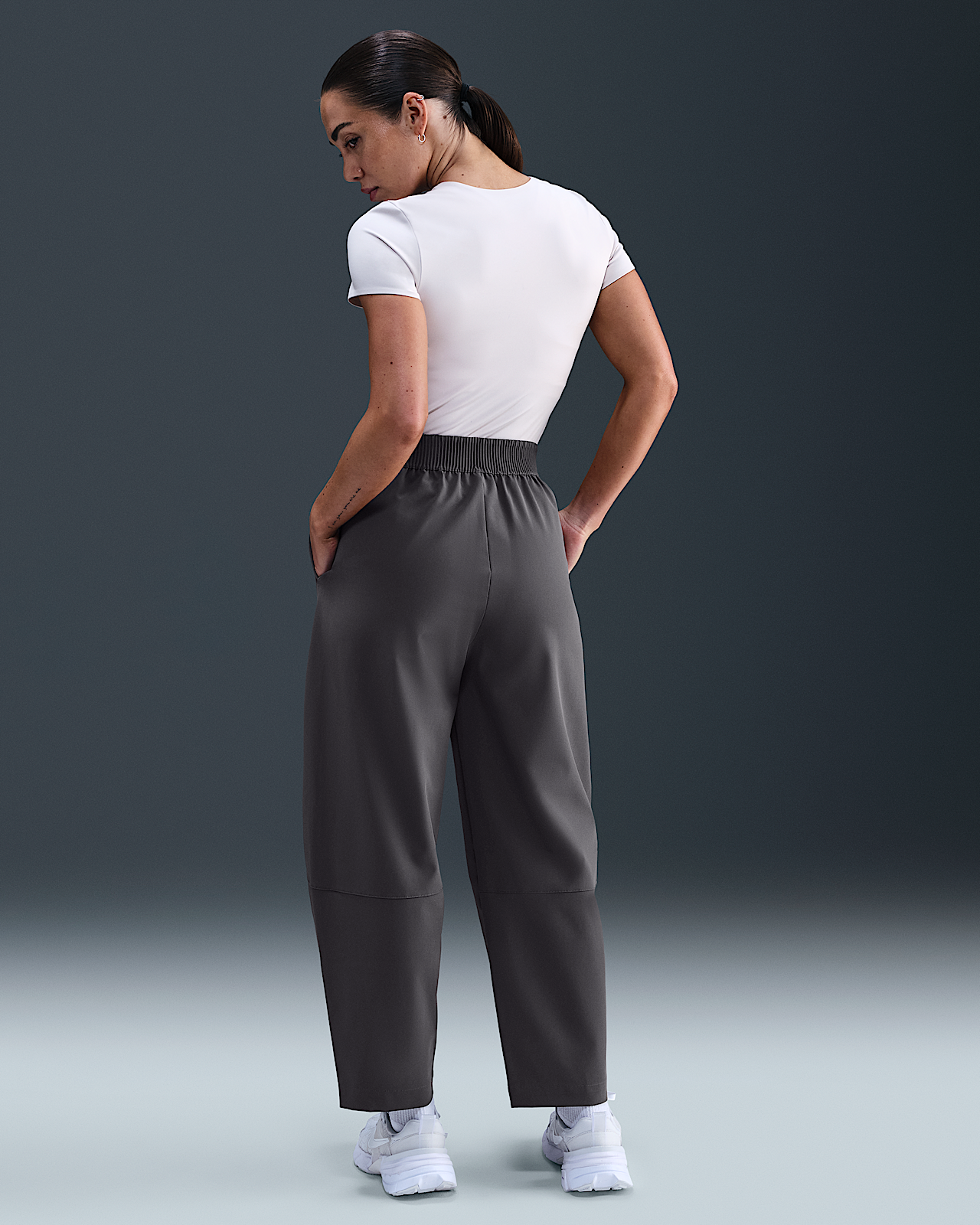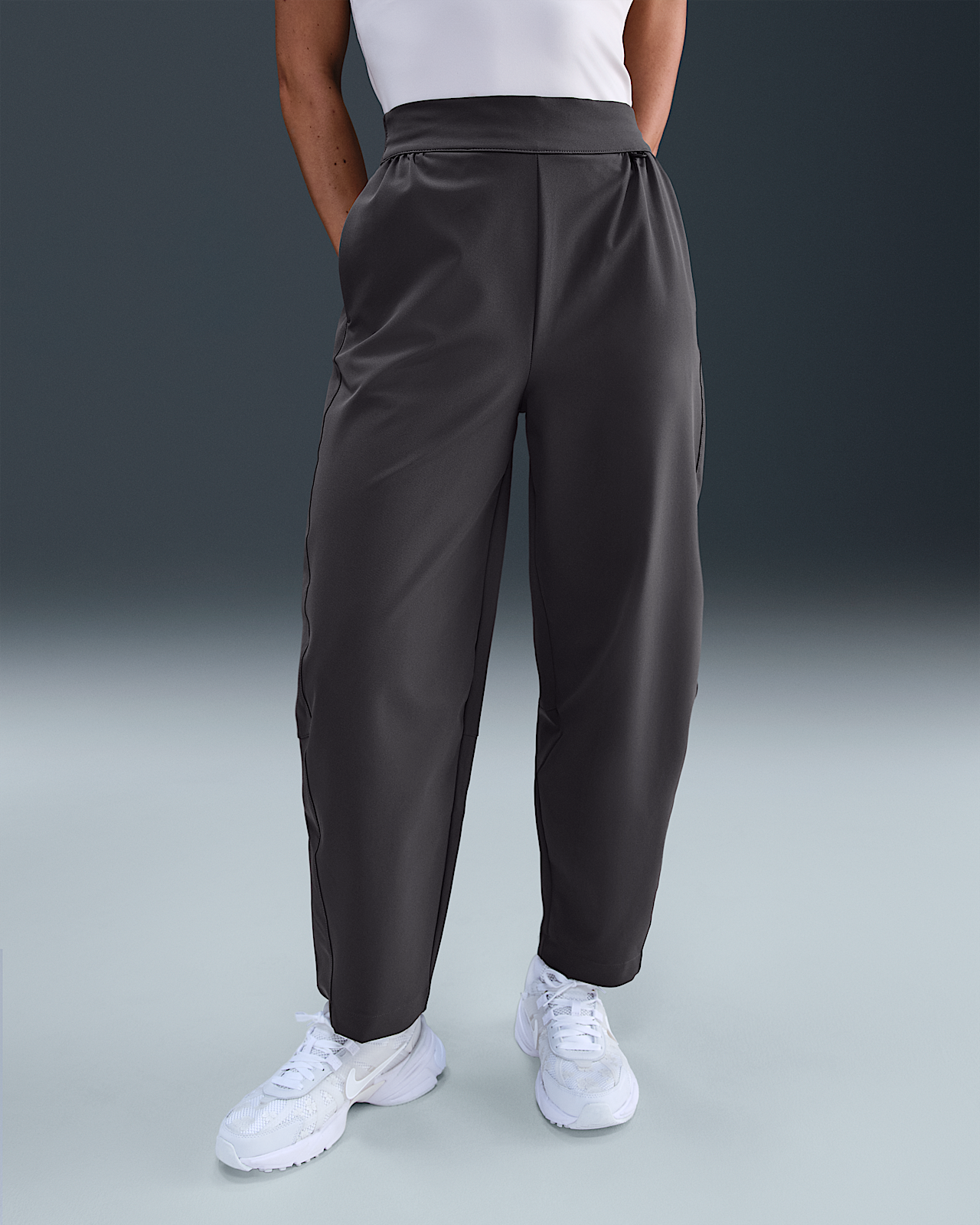 - Женские Nike 24.7 PerfectStretch Dri-FIT High-Waisted Loose Barrel-Leg Pants