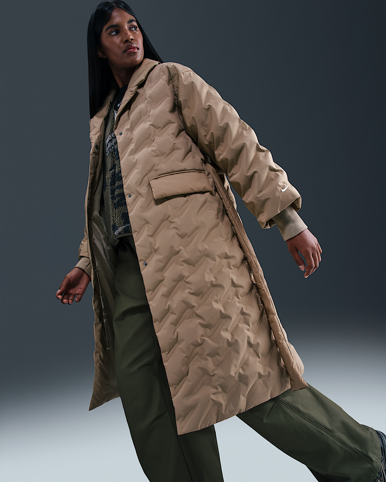 - Женские Nike Sportswear Swoosh Series Therma-FIT Oversized Down Trench Coat