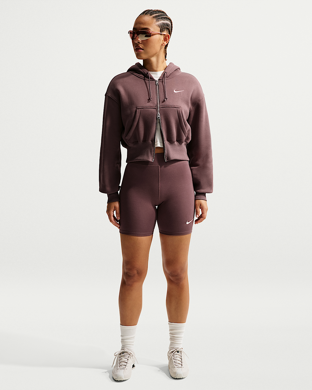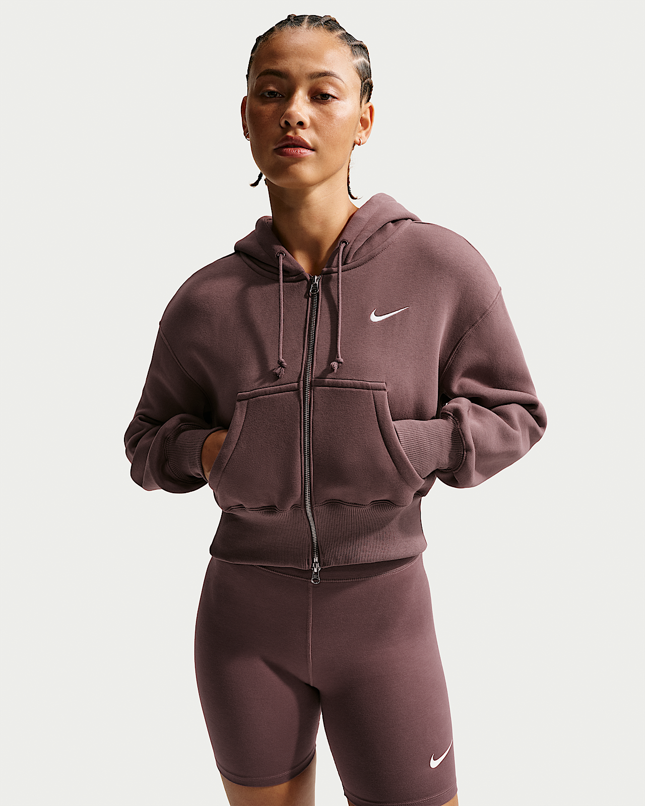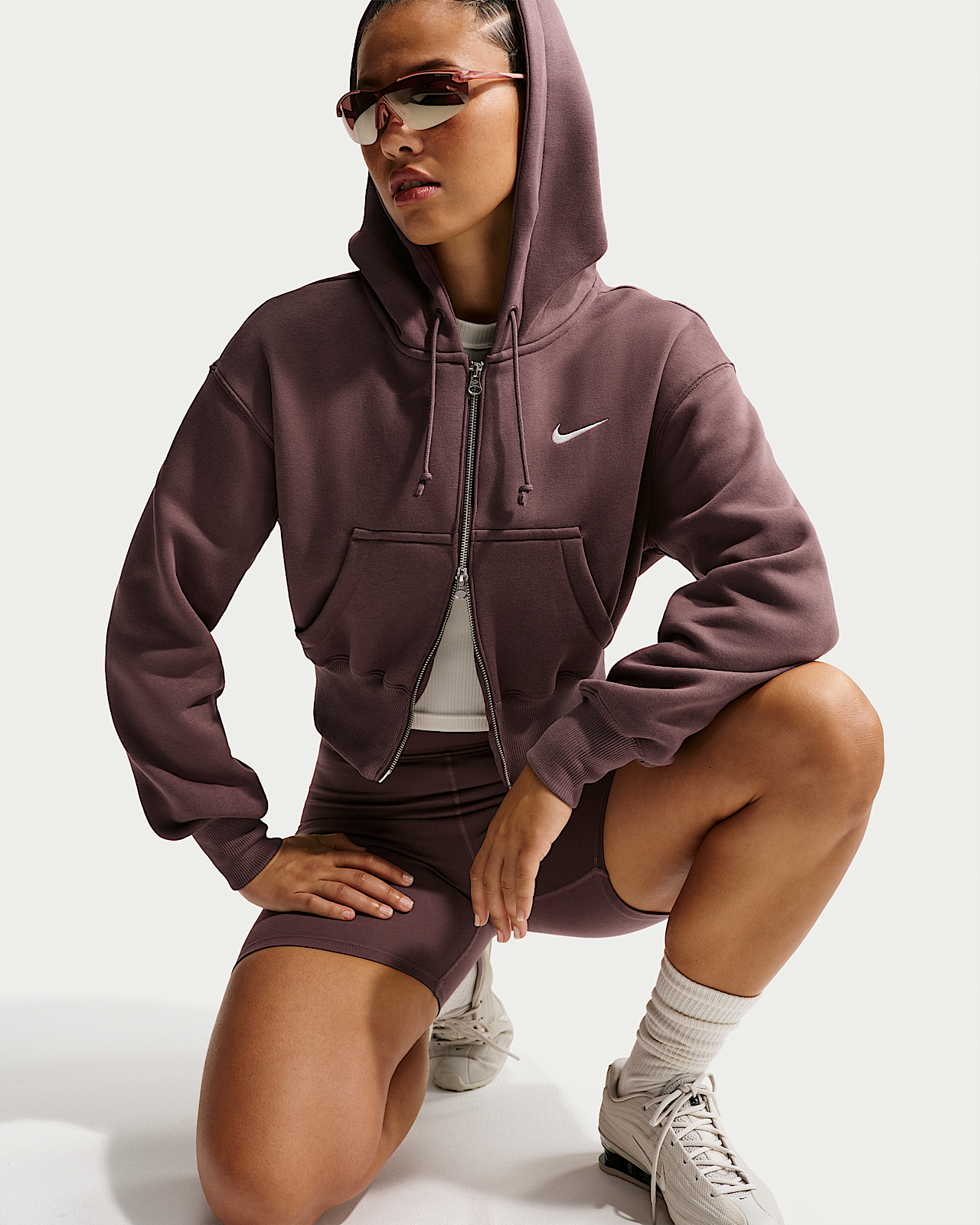 - Женское худи Nike Sportswear Phoenix Fleece Loose Full-Zip Cropped Hoodie