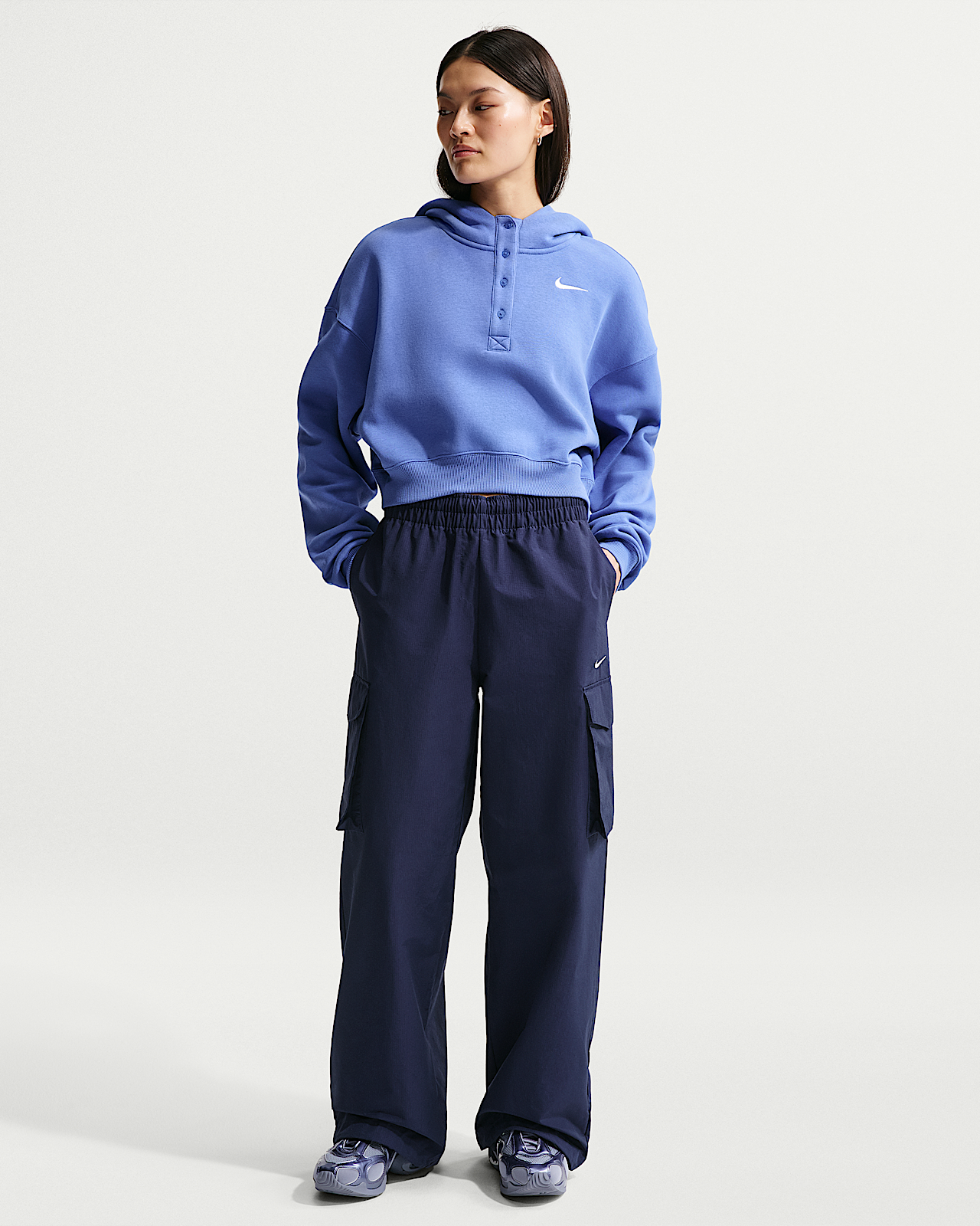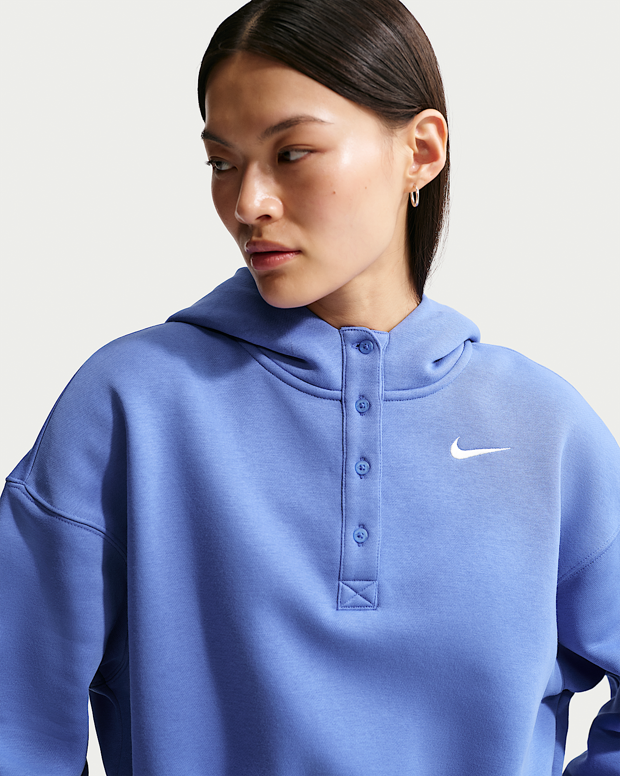 - Женское худи Nike Sportswear Phoenix Fleece Oversized Cropped Henley Hoodie