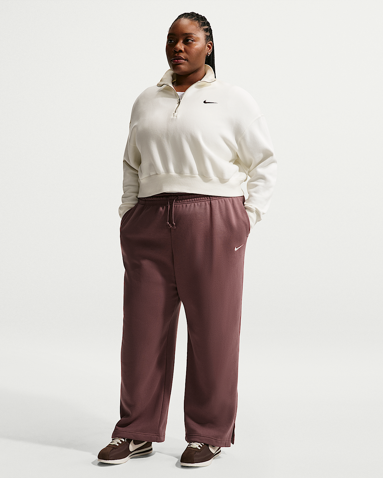 - Женские Nike Sportswear Phoenix Fleece High-Waisted Pants (Plus Size)