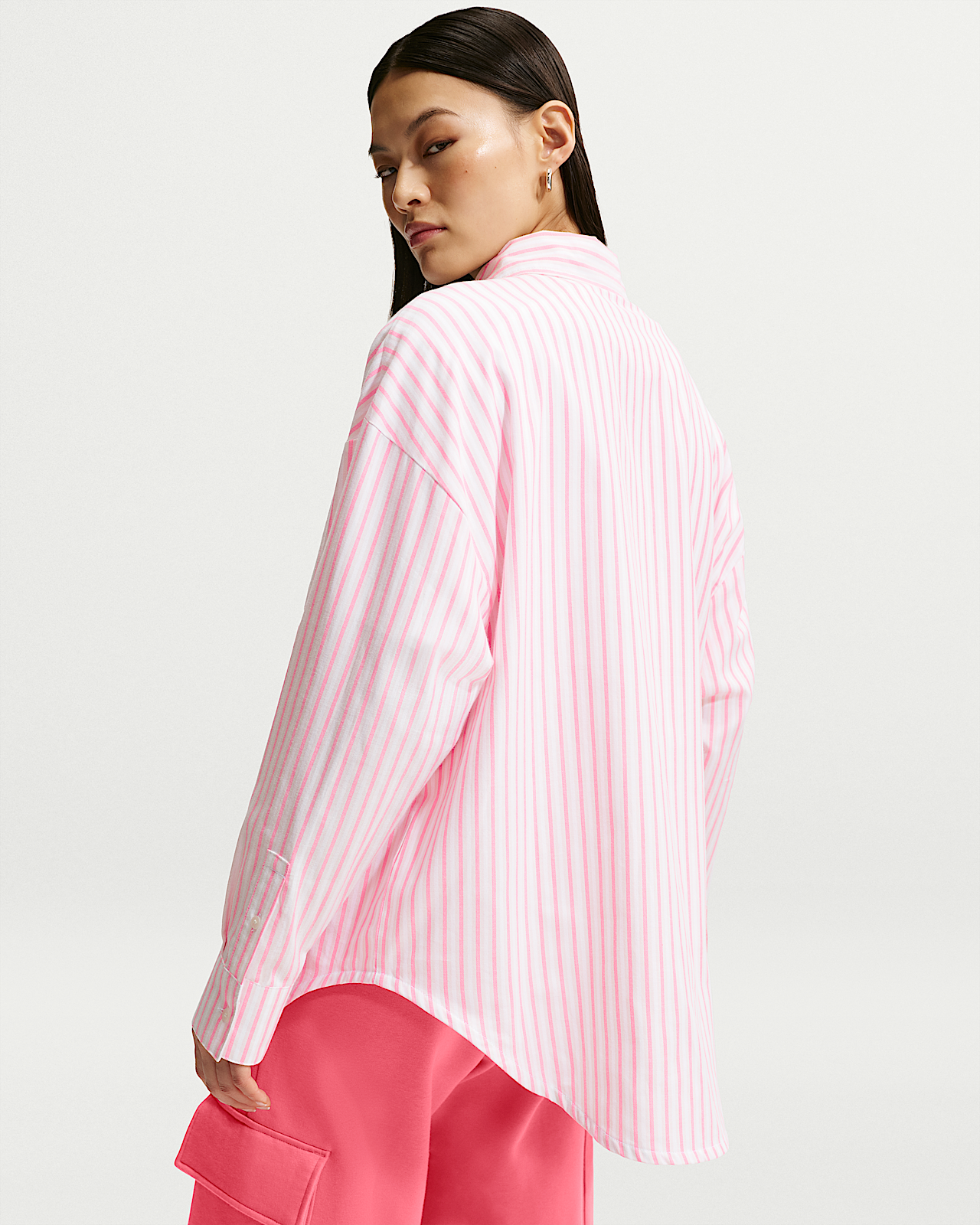 Женские Nike Sportswear Chill Poplin Oversized Woven Long-Sleeve Striped Top