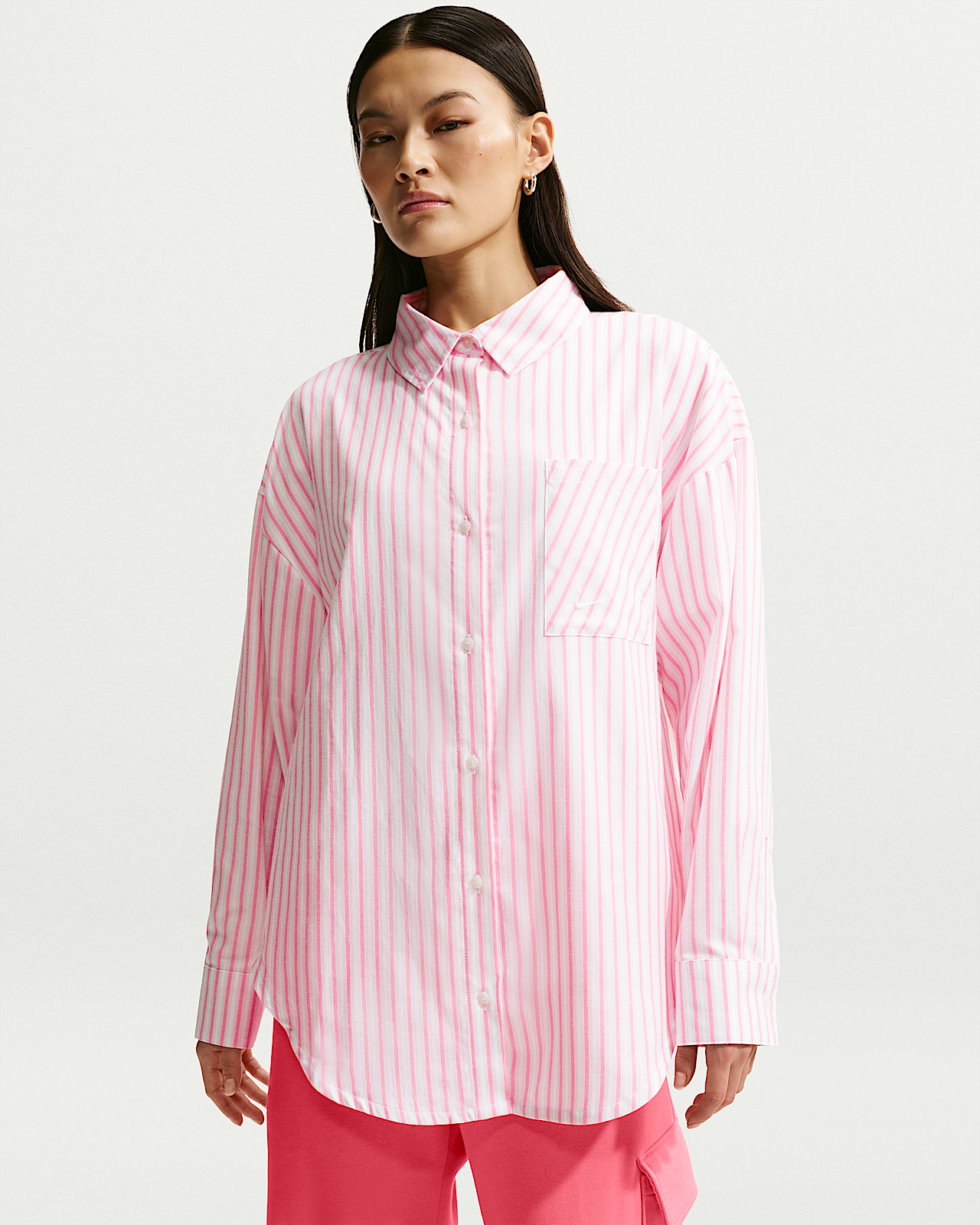 - Женские Nike Sportswear Chill Poplin Oversized Woven Long-Sleeve Striped Top