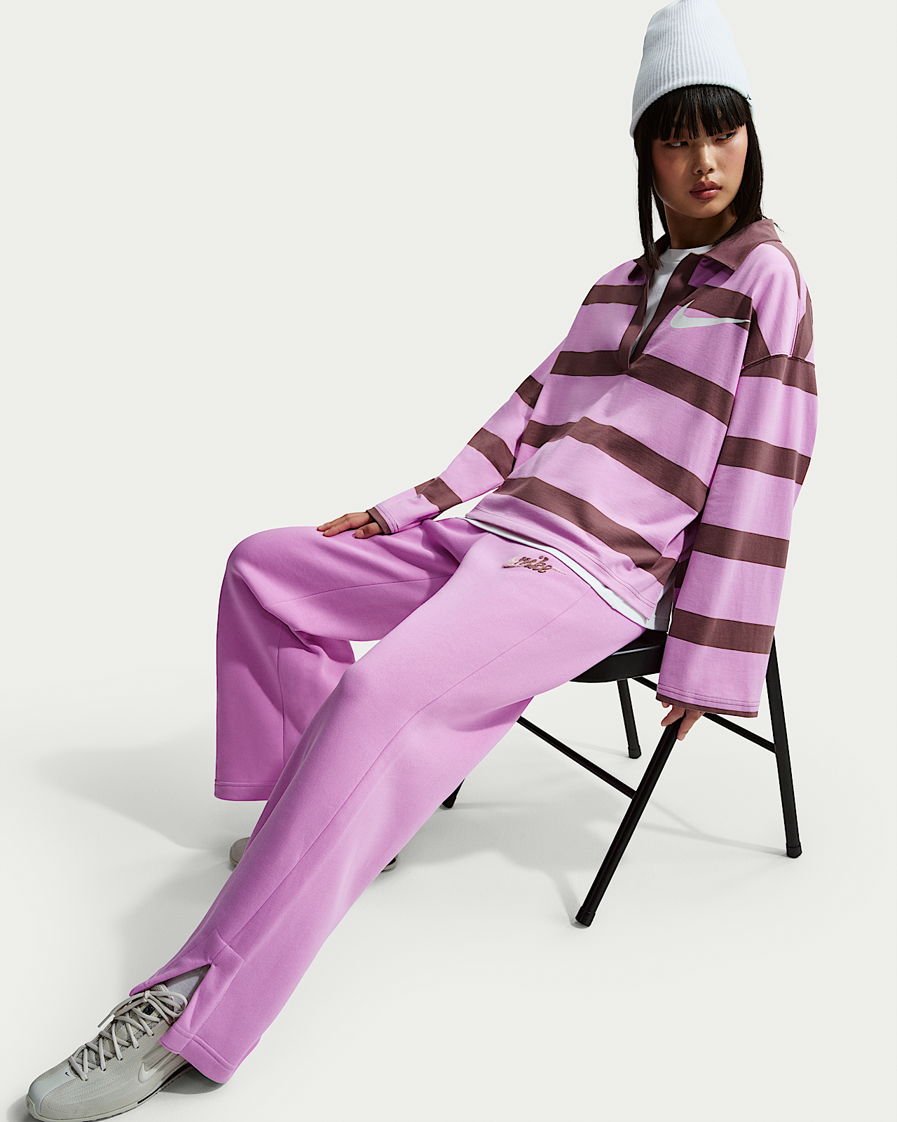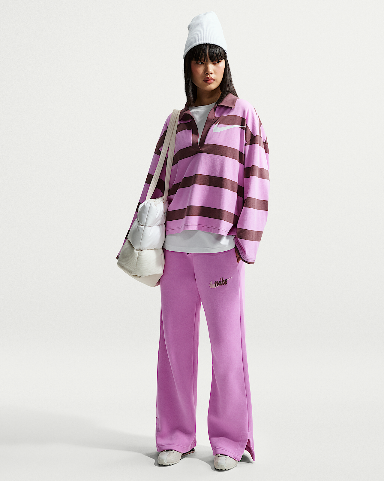 - Женские Nike Sportswear Phoenix Fleece High-Waisted Wide-Leg Logo Pants