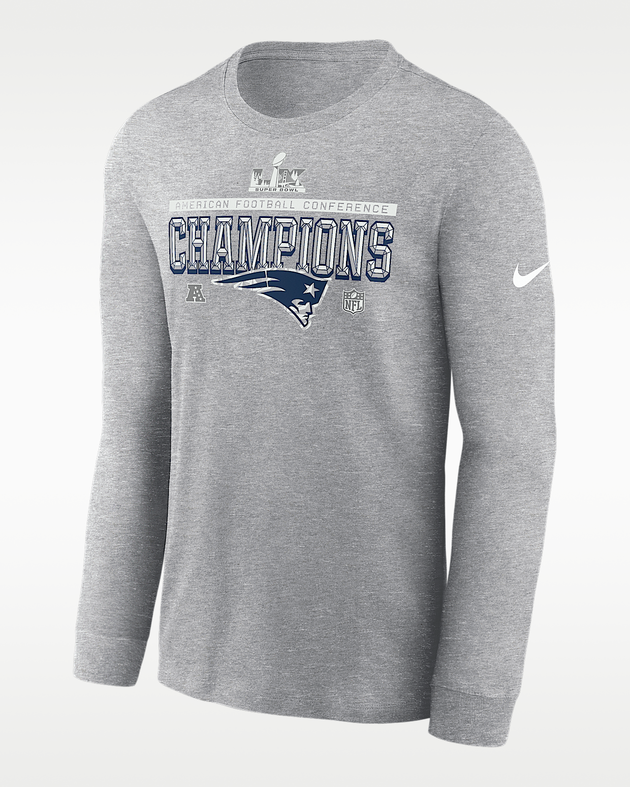 - Мужская футболка New England Patriots 2026 AFC Champions Trophy Collection Nike NFL Long-Sleeve