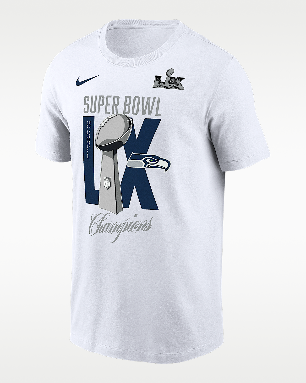- Мужская футболка Seattle Seahawks Super Bowl LX Champions Lombardi Trophy Nike NFL