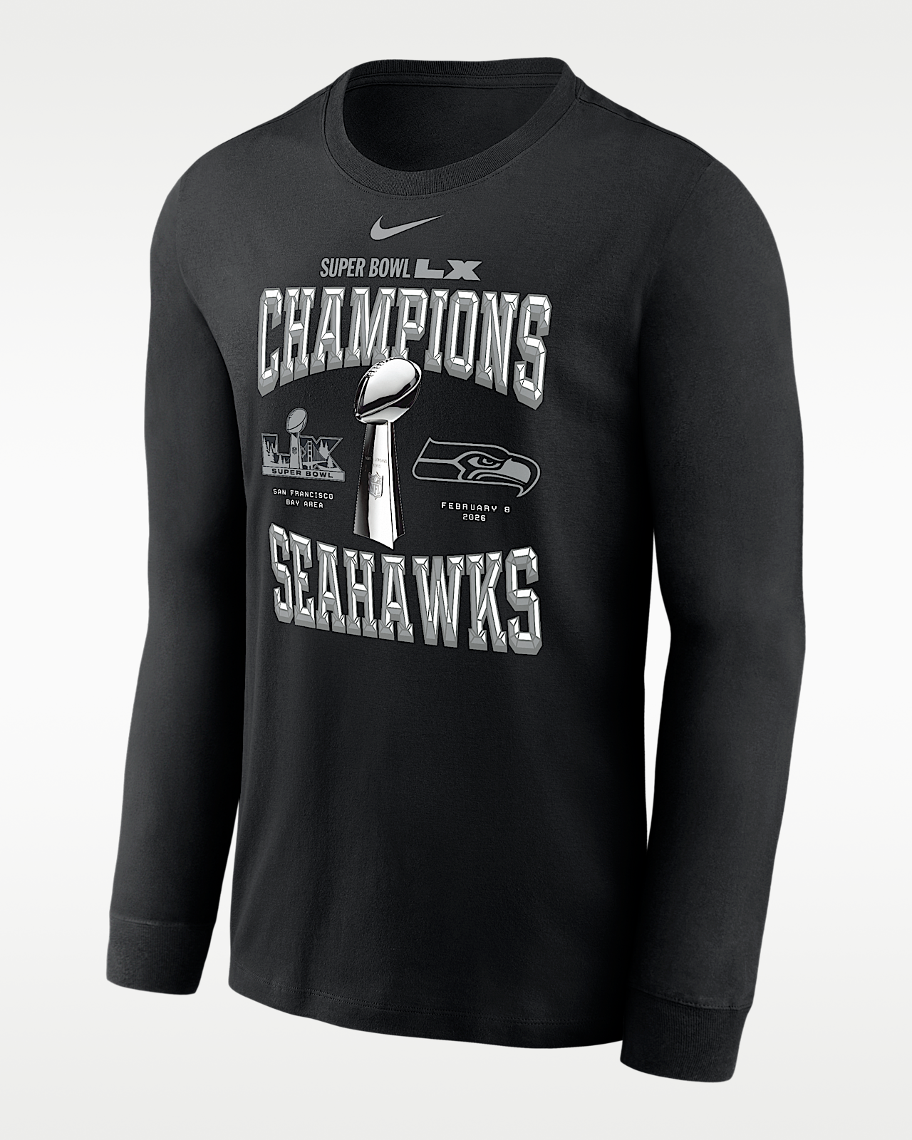 - Мужская футболка Seattle Seahawks Super Bowl LX Champions Trophy Collection Nike NFL Long-Sleeve