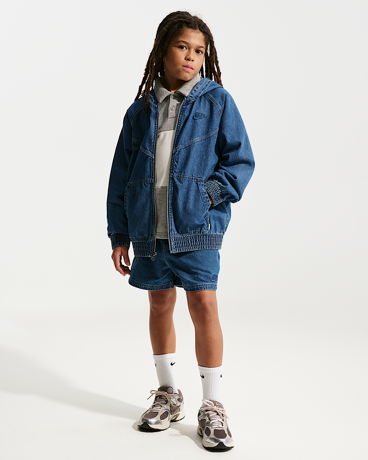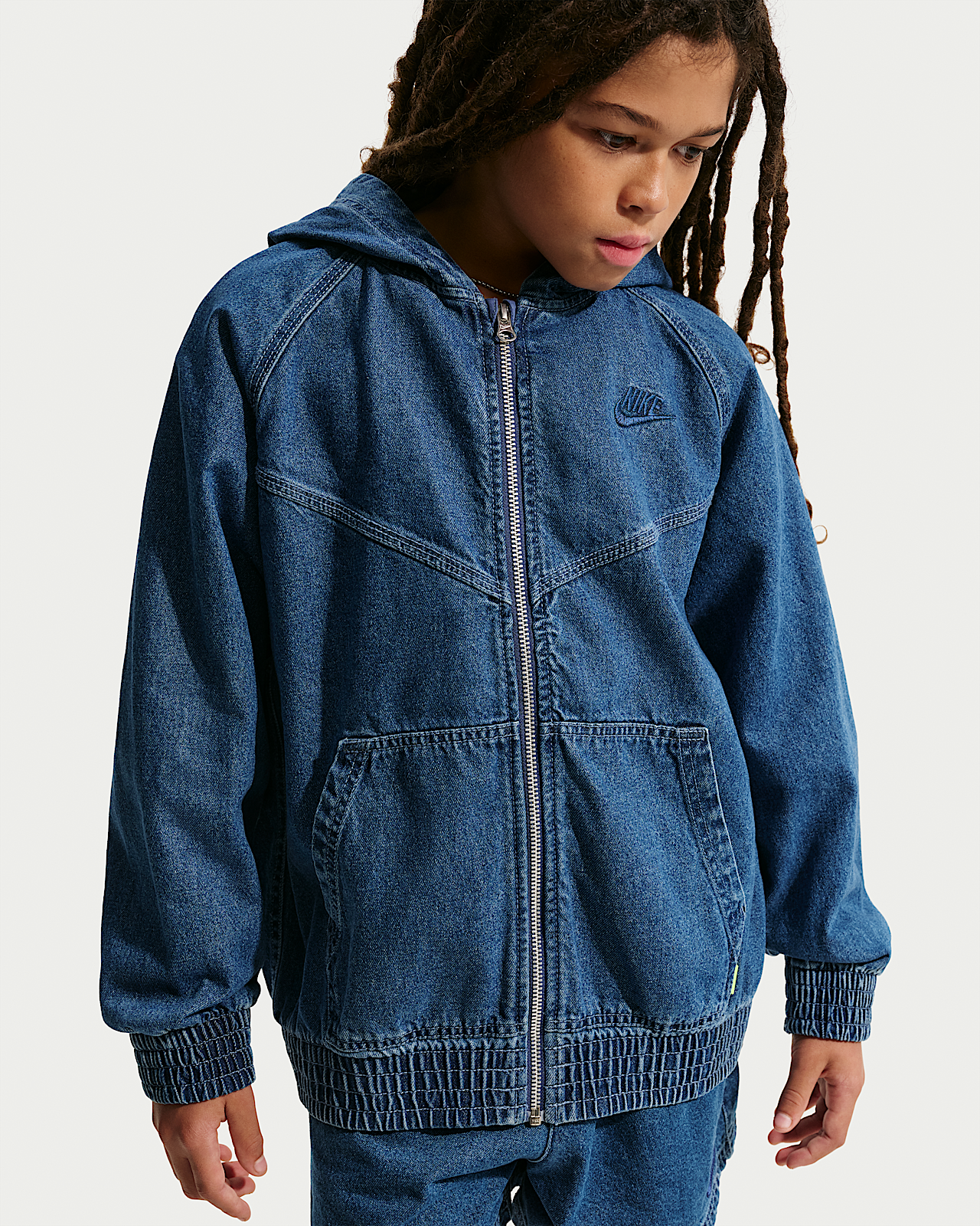 - Детская куртка Nike Sportswear Collection Big Kids' Full-Zip Hooded Denim