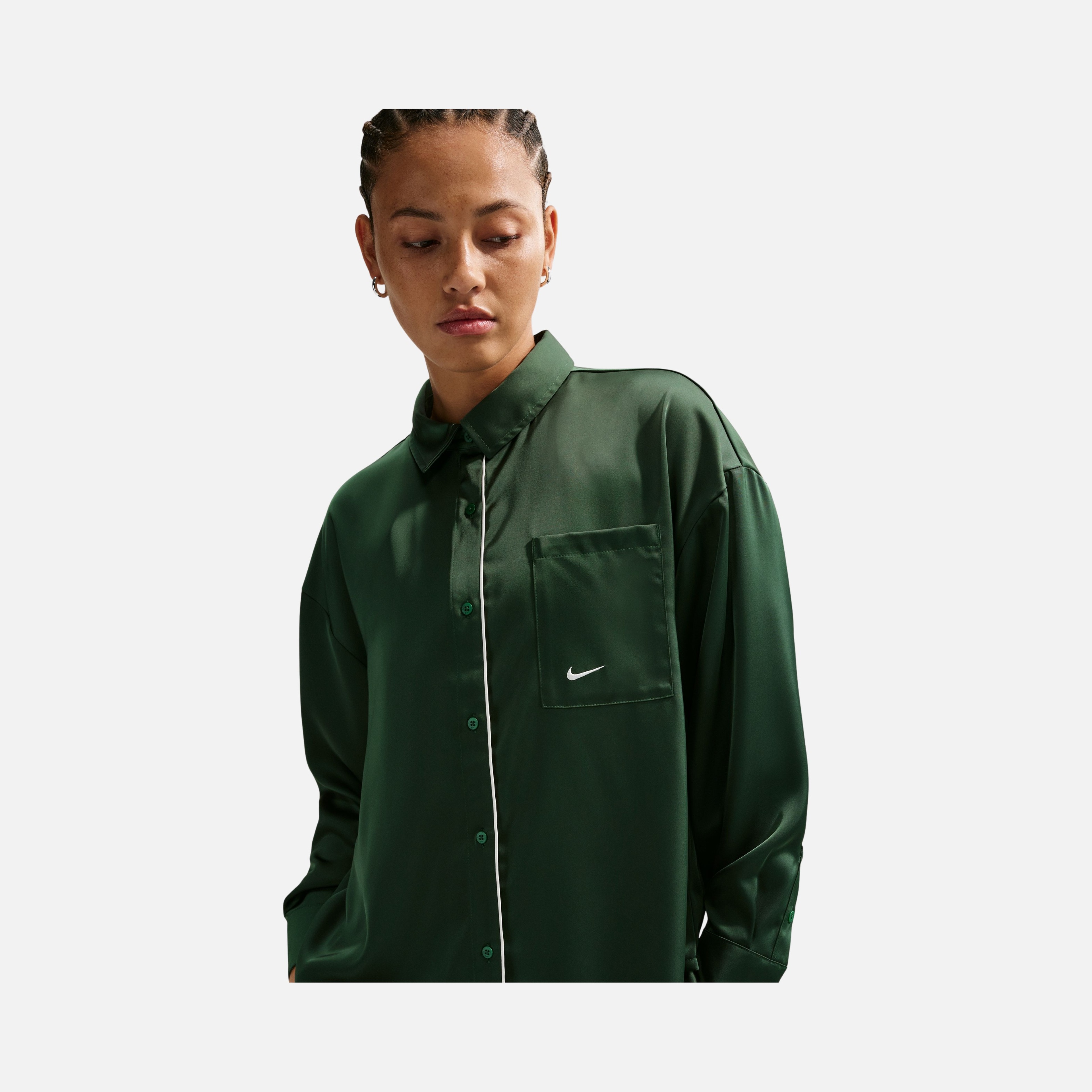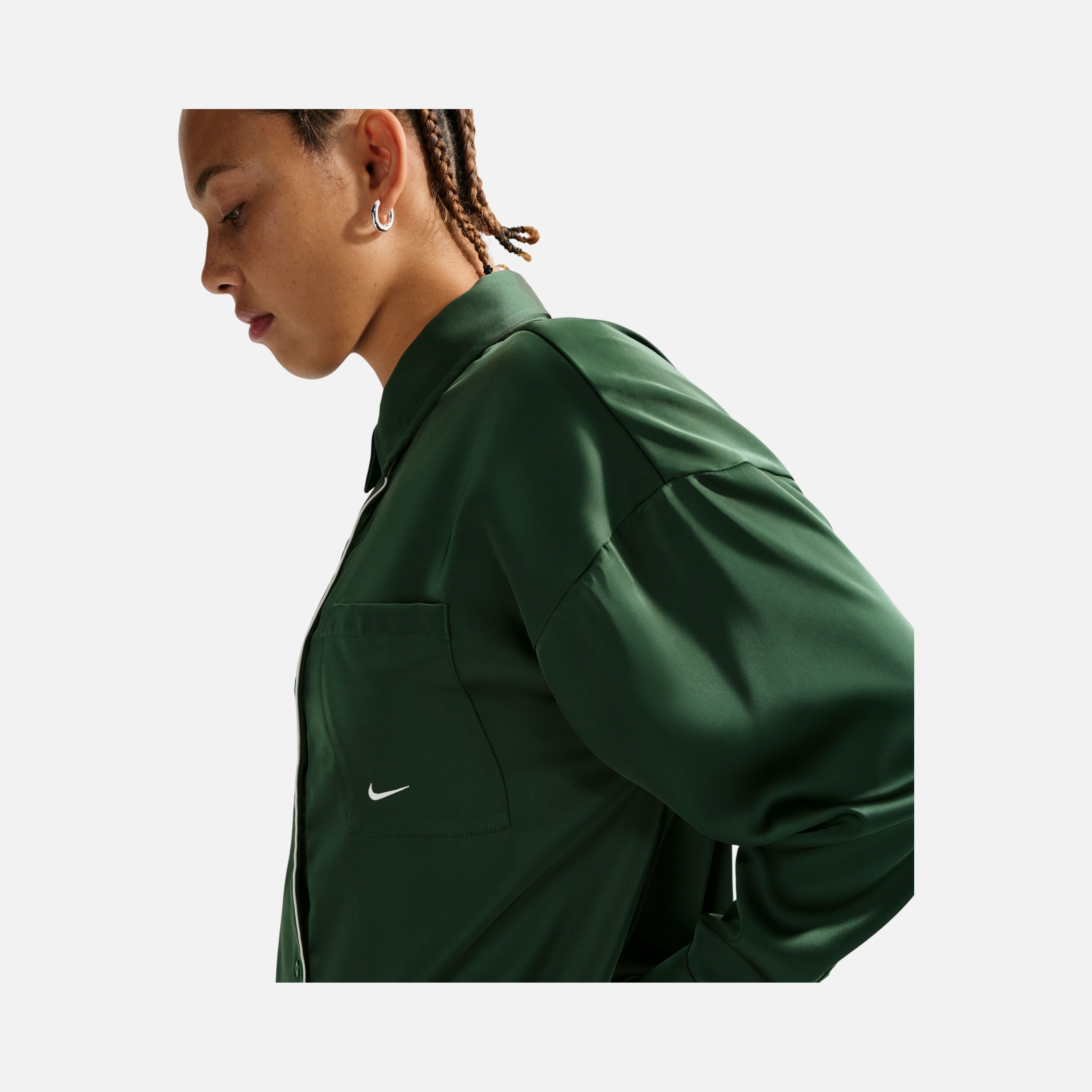 - Женская рубашка Nike Oversize Woven Saten Long-Sleeve Top Gömlek