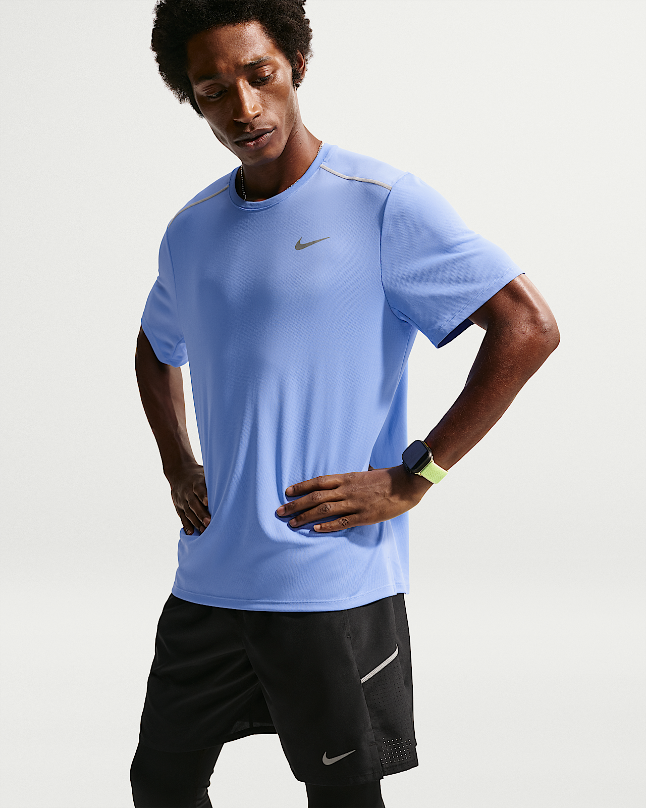 - Мужские шорты Nike Miler Dri-FIT UV Protection Short-Sleeve Top для бега