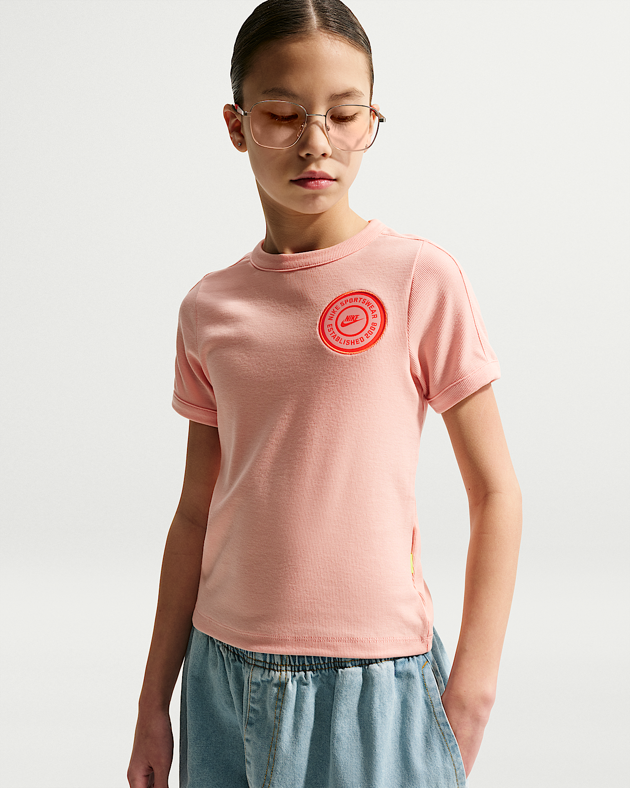 - Детские шорты Nike Sportswear Big Kids' (Girls') Short-Sleeve Rib Top