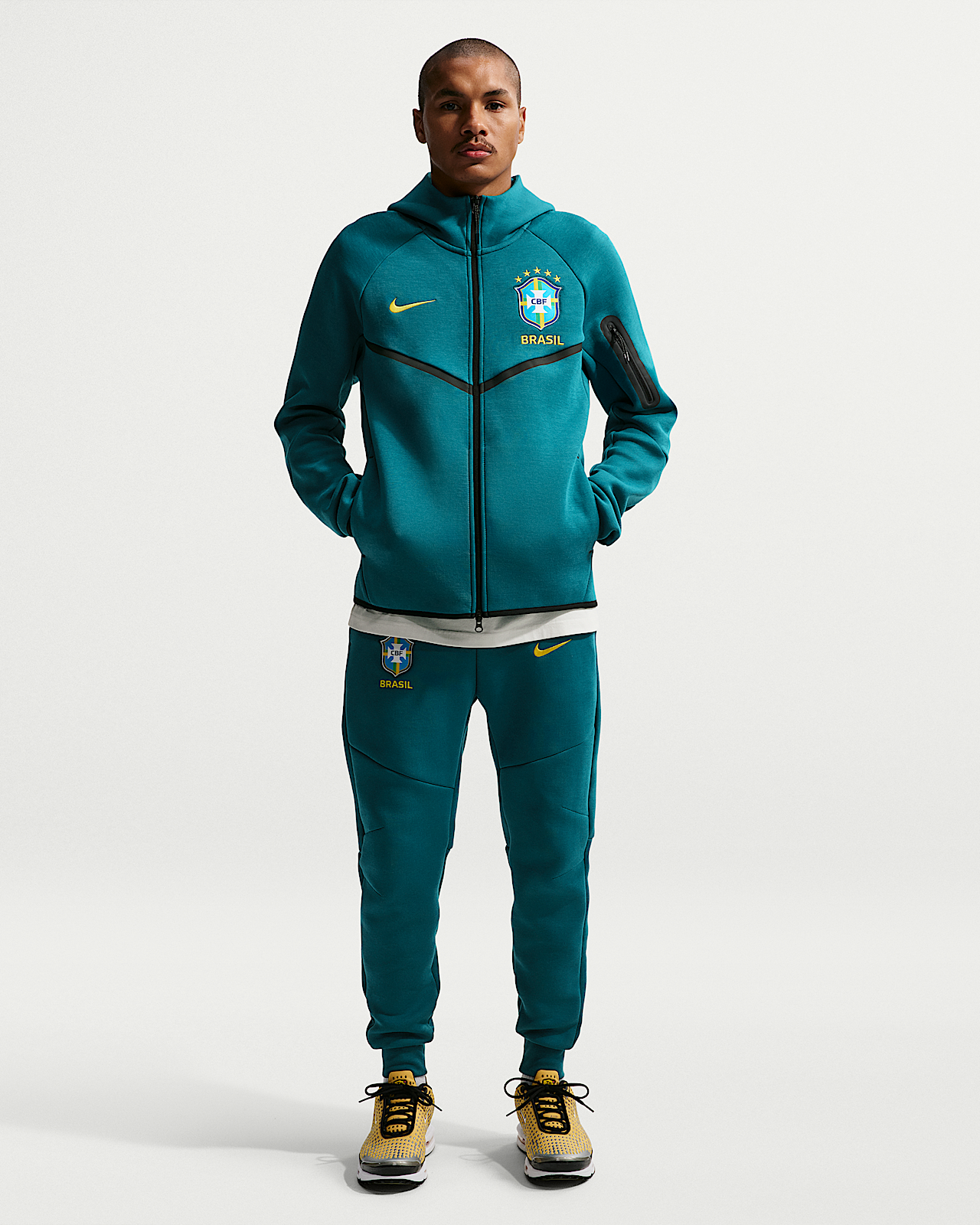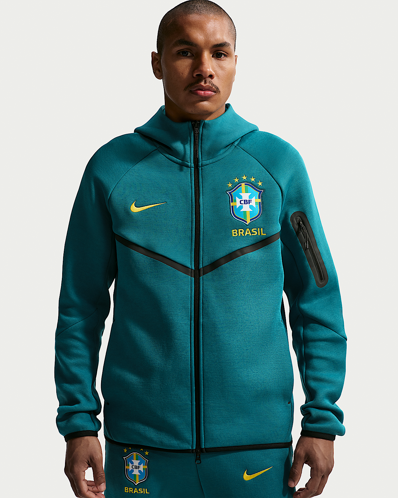 - Мужское худи Brazil Tech Fleece Windrunner Nike Soccer Full-Zip Hoodie для бега