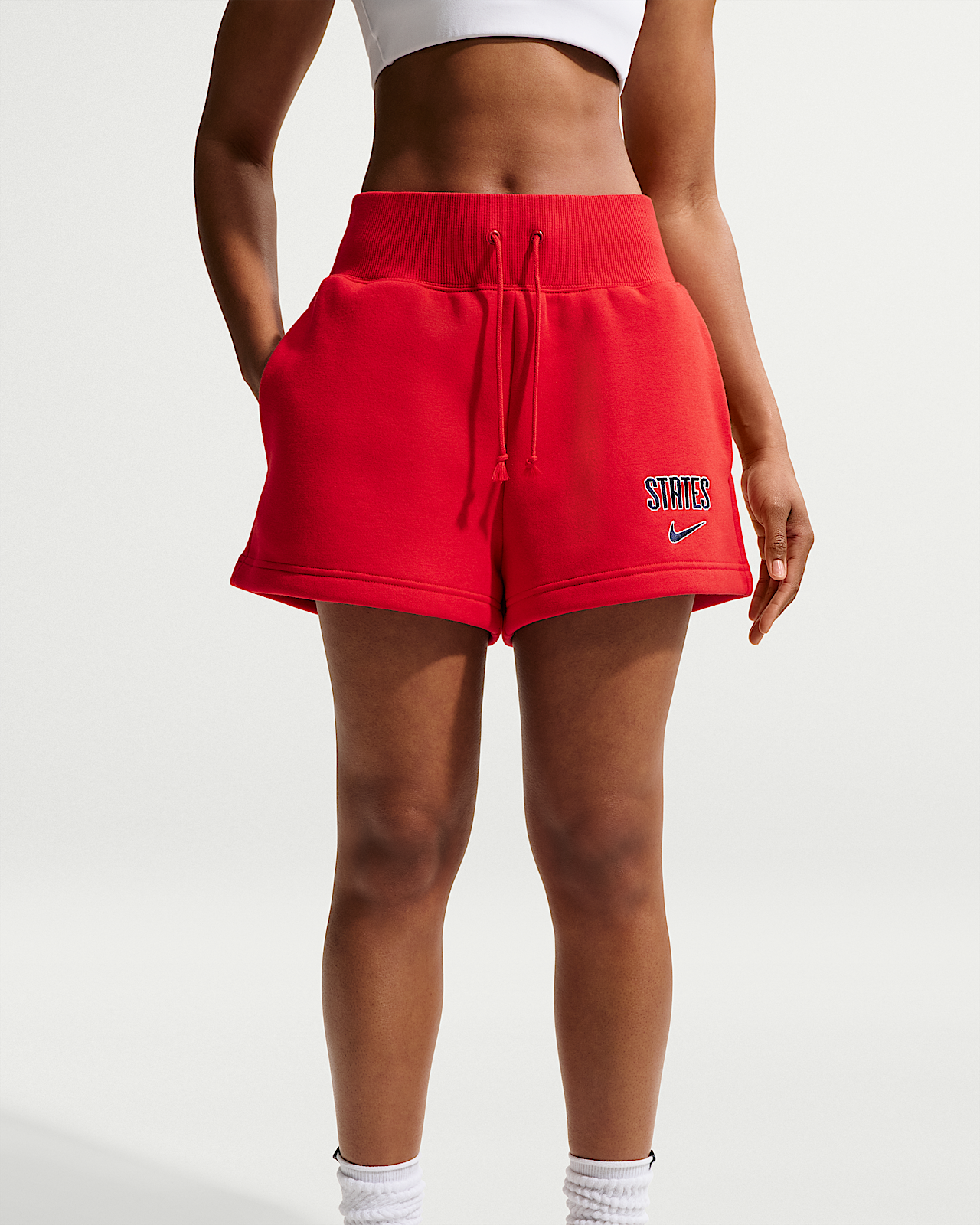 - Женские шорты USMNT Phoenix Fleece Nike Soccer High-Waisted Shorts