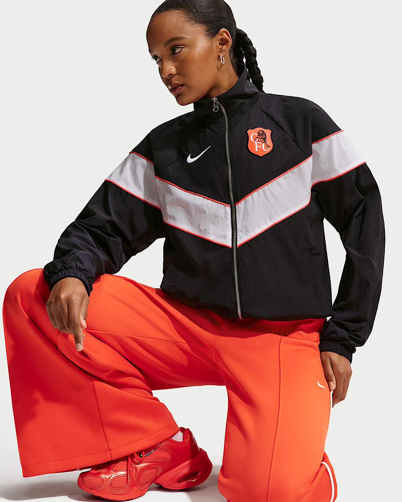 - Женская куртка Chelsea FC Windrunner Nike Soccer UV Woven Full-Zip для бега