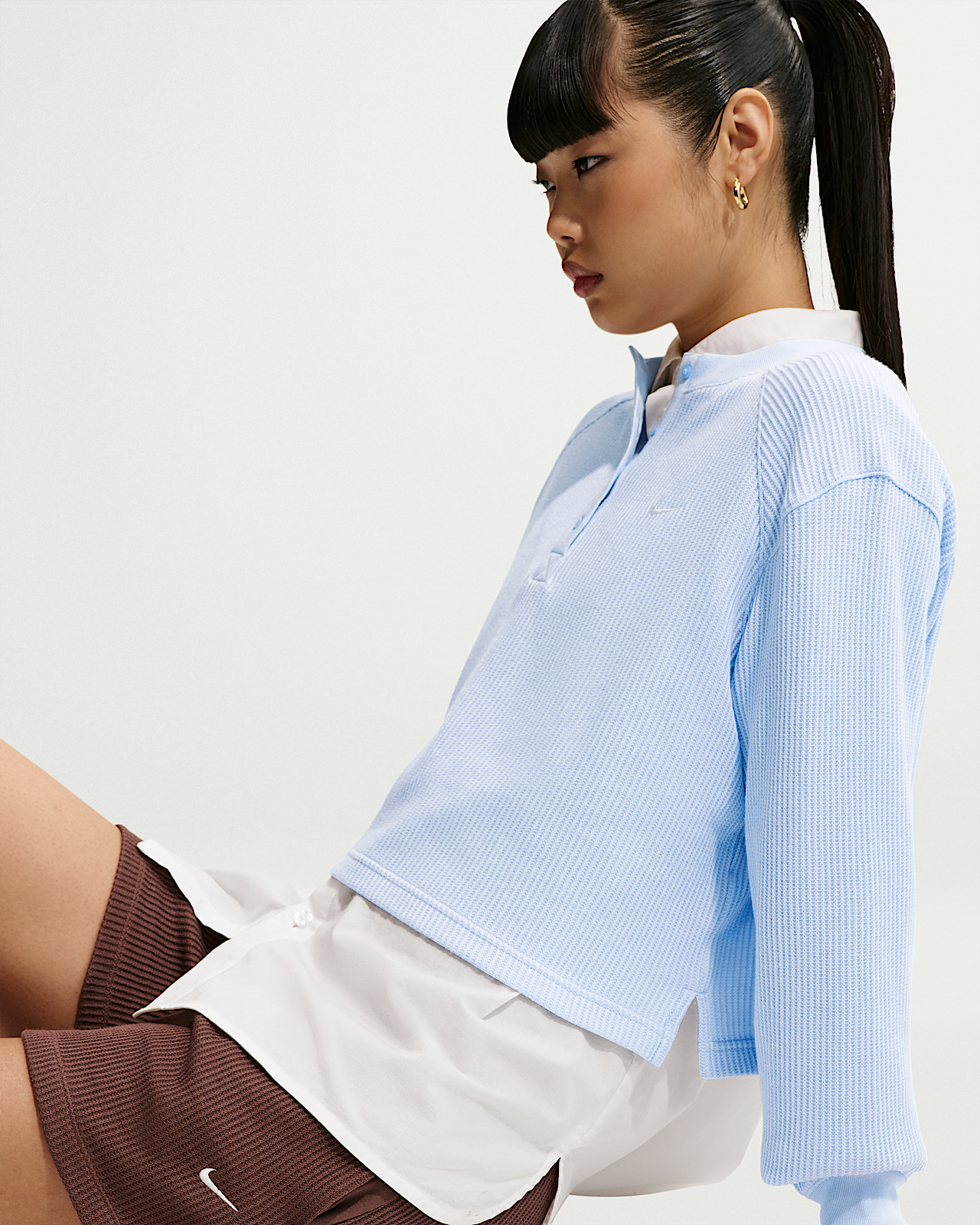 - Женские Nike Sportswear Chill Waffle Oversized Long-Sleeve Henley Top