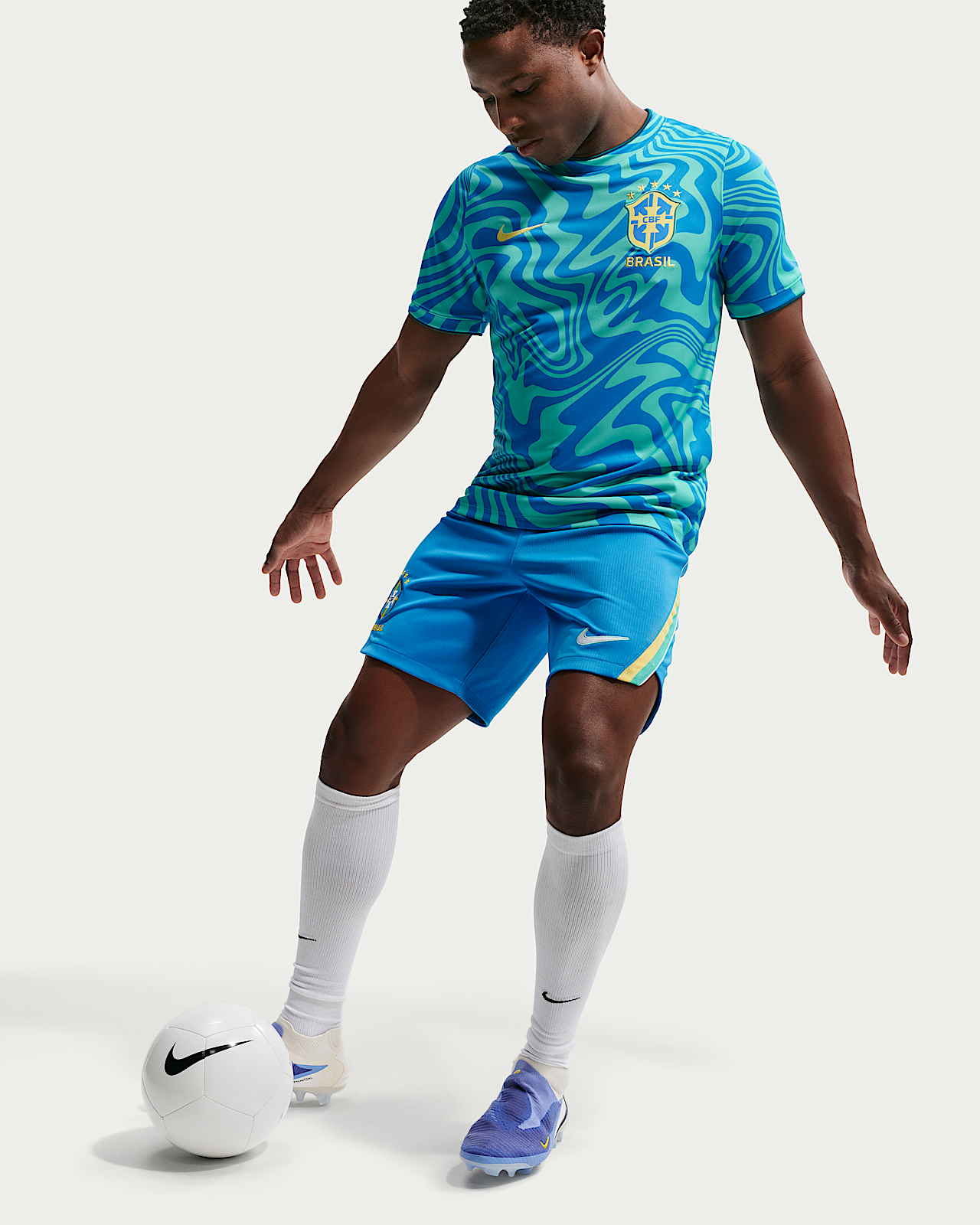 - Мужские шорты Brazil Academy Pro Nike Dri-FIT Soccer Pre-Match Short-Sleeve Top