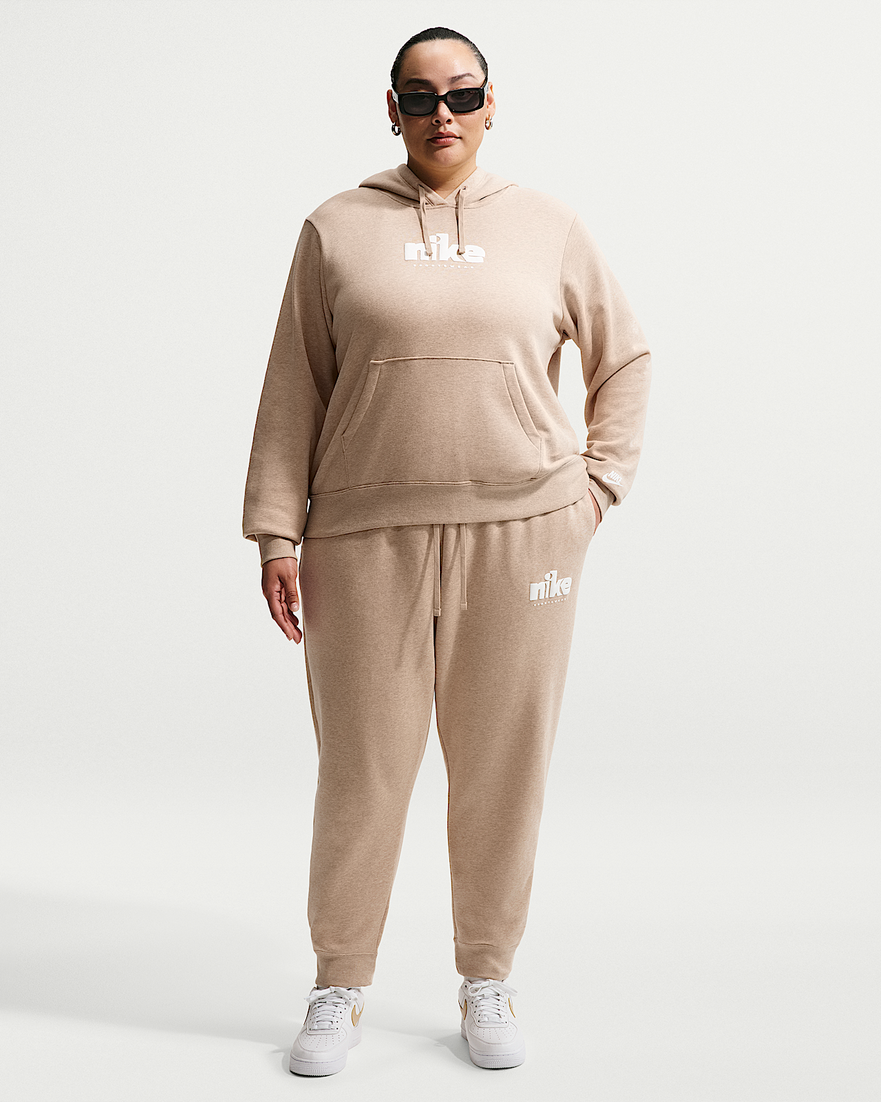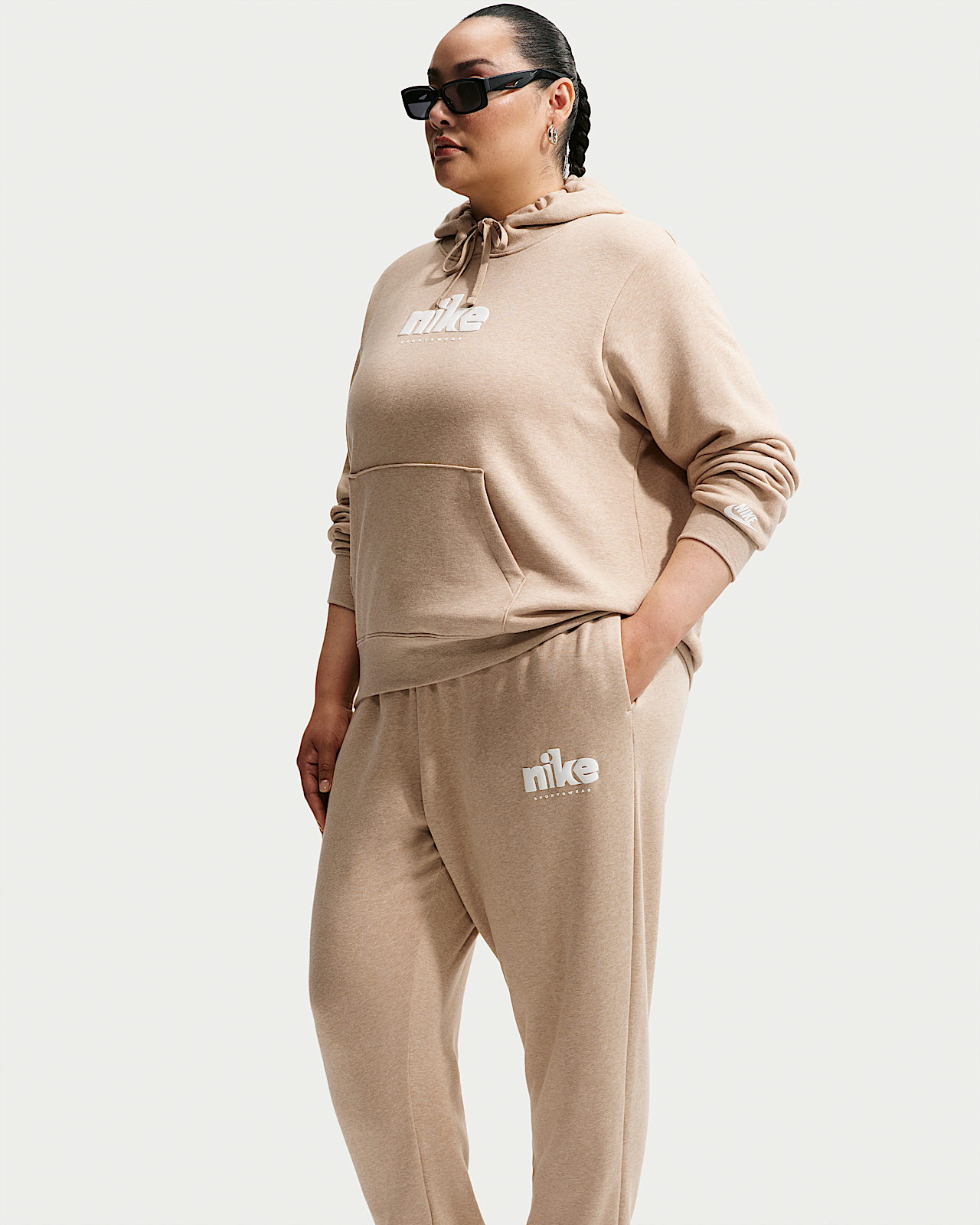 - Женские Nike Sportswear Club Fleece Graphic Mid-Rise Pants (Plus Size)